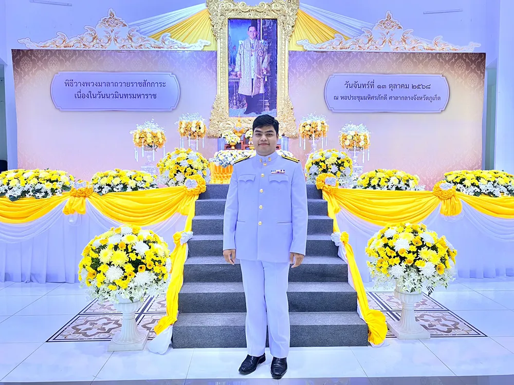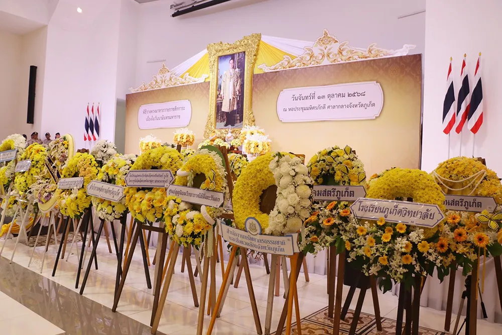 ร่วมพิธีวางพวงมาลาถวายราชสักการะ เนื่องในวันนวมินทรมหาราช เพื่อน้อมรำลึกถึงพระมหากรุณาธิคุณอันหาที่สุดมิได้ของพระบาทสมเด็จพระบรมชนกาธิเบศร มหาภูมิพลอดุลยเดชมหาราช บรมนาถบพิตร ณ หอประชุมมหิศรภักดี ศาลากลางจังหวัดภูเก็ต 13 ตุลาคม 2568