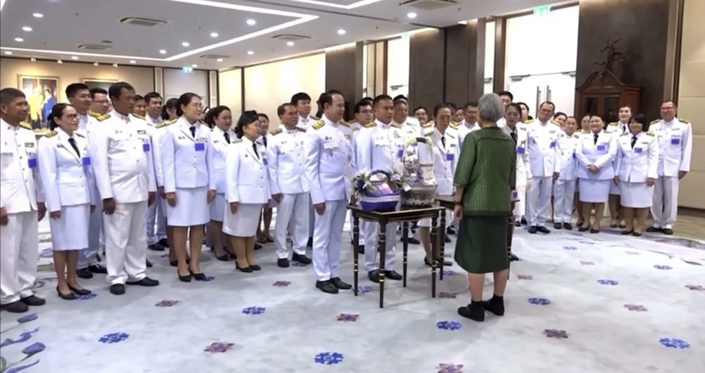 ในโอกาสนี้ คณะได้ทูลเกล้าถวายเงินโดยเสด็จพระราชกุศลตามพระราชอัธยาศัย กราบบังคมทูลรายงานการปฏิบัติราชการ ของกลุ่มโรงเรียนเฉลิมพระเกียรติสมเด็จพระศรีนครินทร์ พร้อมทั้งนำคณะครูที่จะเกษียณอายุราชการ ประจำปี 2568 เข้าเฝ้าทูลละอองพระบาท กราบถวายบังคมทูลลา ณ วังสระปทุม