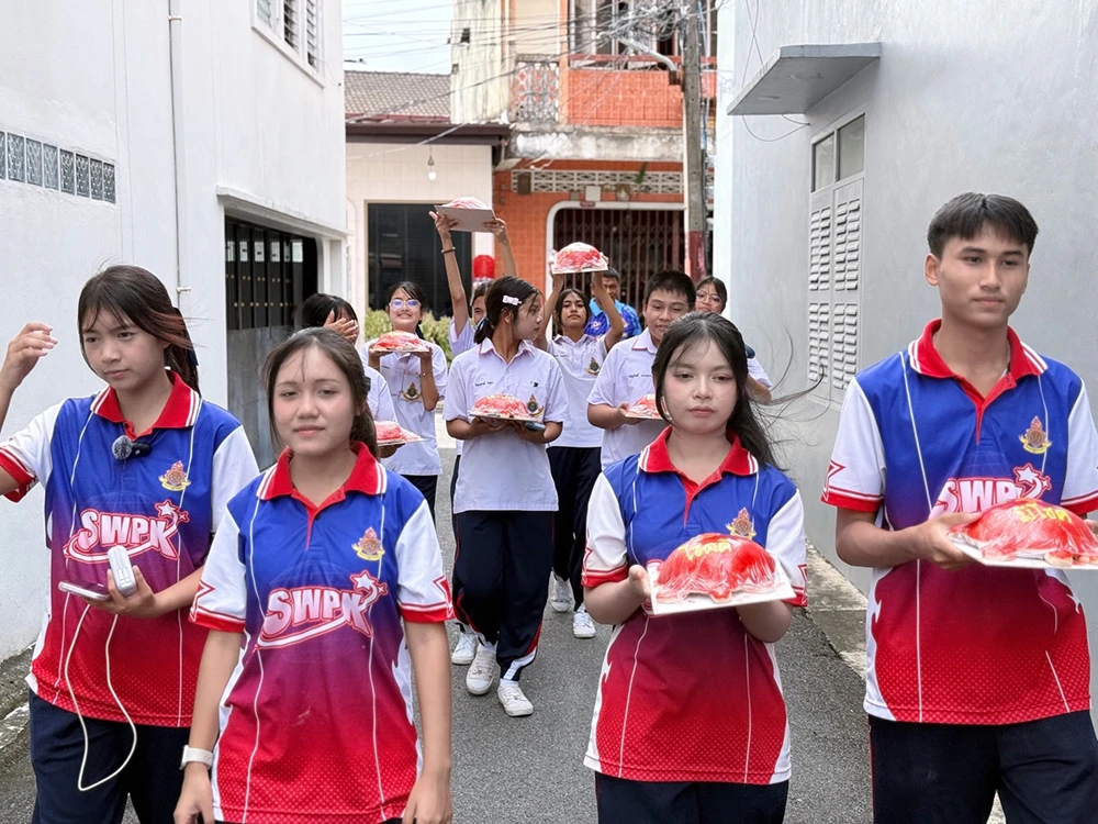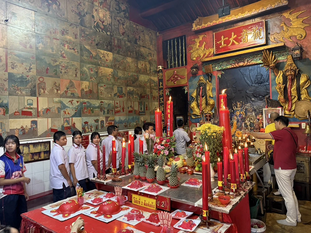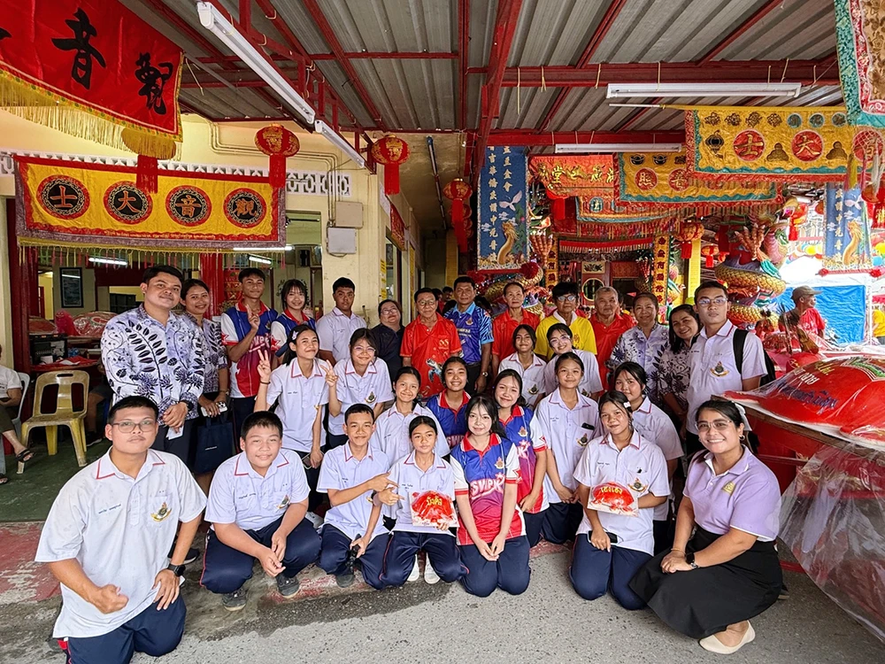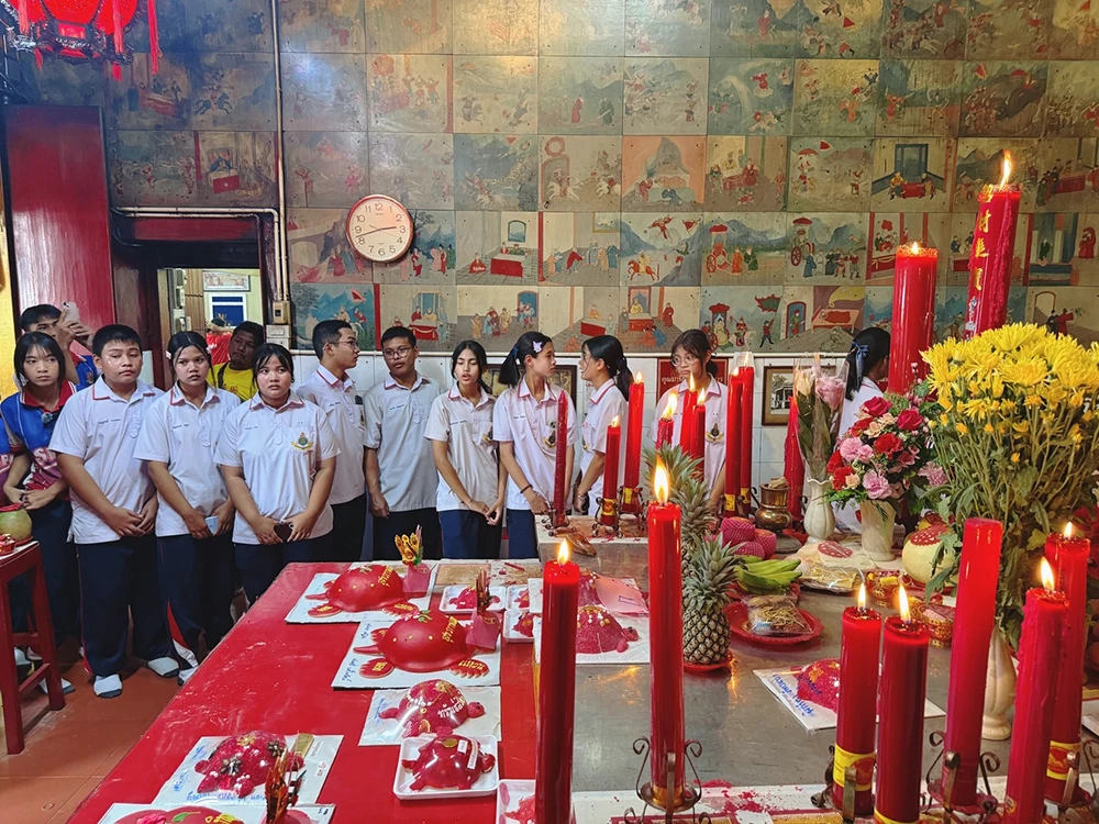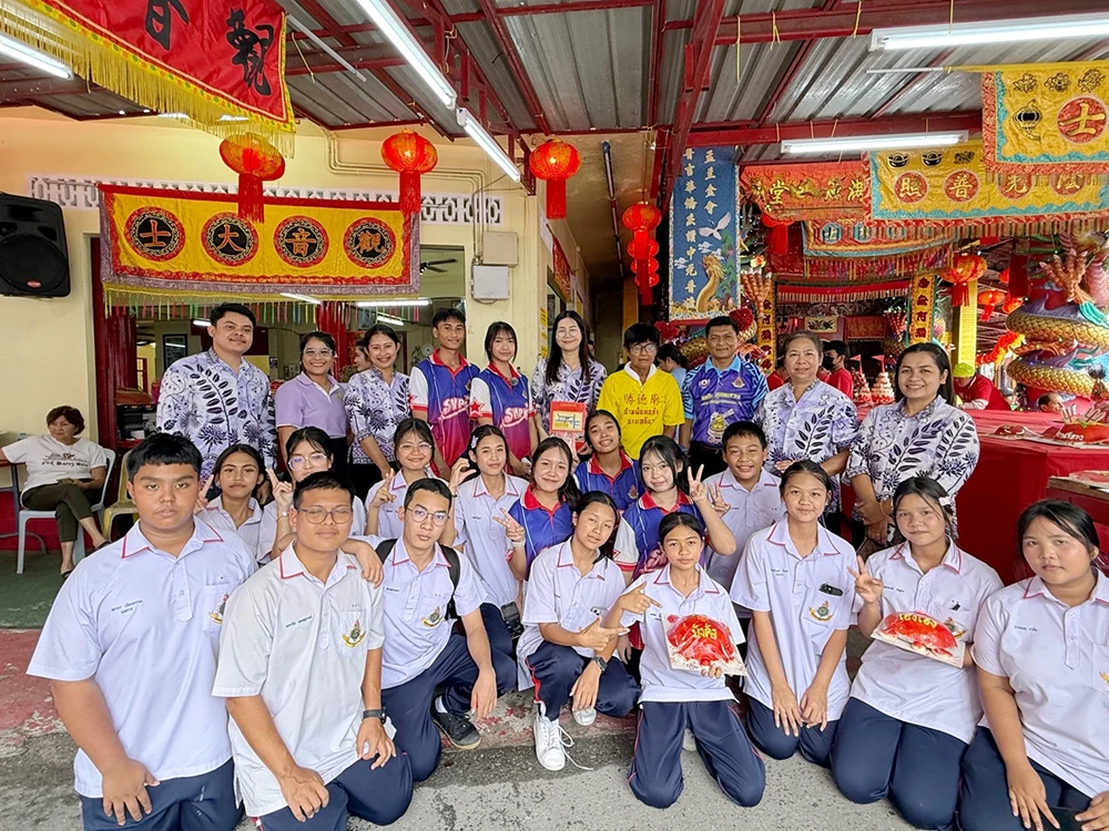 วันศุกร์ที่ 12 กันยายน 2568 ดร.ณัฐญาพร เสวตานนท์ ผู้อำนวยการโรงเรียนเฉลิมพระเกียรติสมเด็จพระศรีนครินทร์ ภูเก็ต ในพระราชูปถัมภ์สมเด็จพระเทพรัตนราชสุดาฯ สยามบรมราชกุมารี มอบหมายให้นางสาวสุพิชญา อังคะมาตย์ หัวหน้างานส่งเสริมวัฒนธรรมสัมพันธ์ภาษา พร้อมด้วยคณะครู นำนักเรียนเข้าร่วมกิจกรรม ทำขนมเต่า เล่าประวัติพ้อต่อ เดินไปไหว้พระ ภายใต้โครงการส่งเสริมวัฒนธรรมสัมพันธ์ภาษา(ปุ๊นเต่ท้องถิ่น รักษ์ศิลป์ภูเก็ต)กิจกรรม “เต่าพาขึ้นบุญ หอมละมุนพ้อต่อ”โดยได้รับการสนับสนุนจากสมาคมผู้ปกครองและครู ร้านโฮ่เฮี้ยงและศาลเจ้าผ้อต่อก๊ง บางเหนียว ณ ร้านโฮ่เฮี้ยงและศาลเจ้าผ้อต่อก๊ง บางเหนียว อำเภอเมือง จังหวัดภูเก็ต