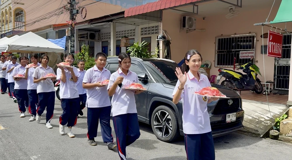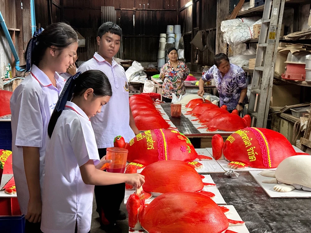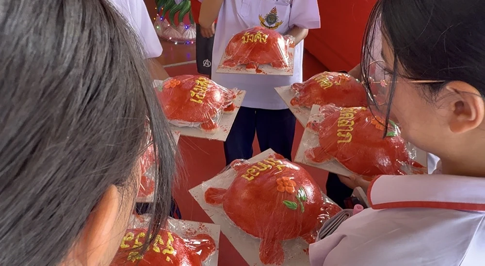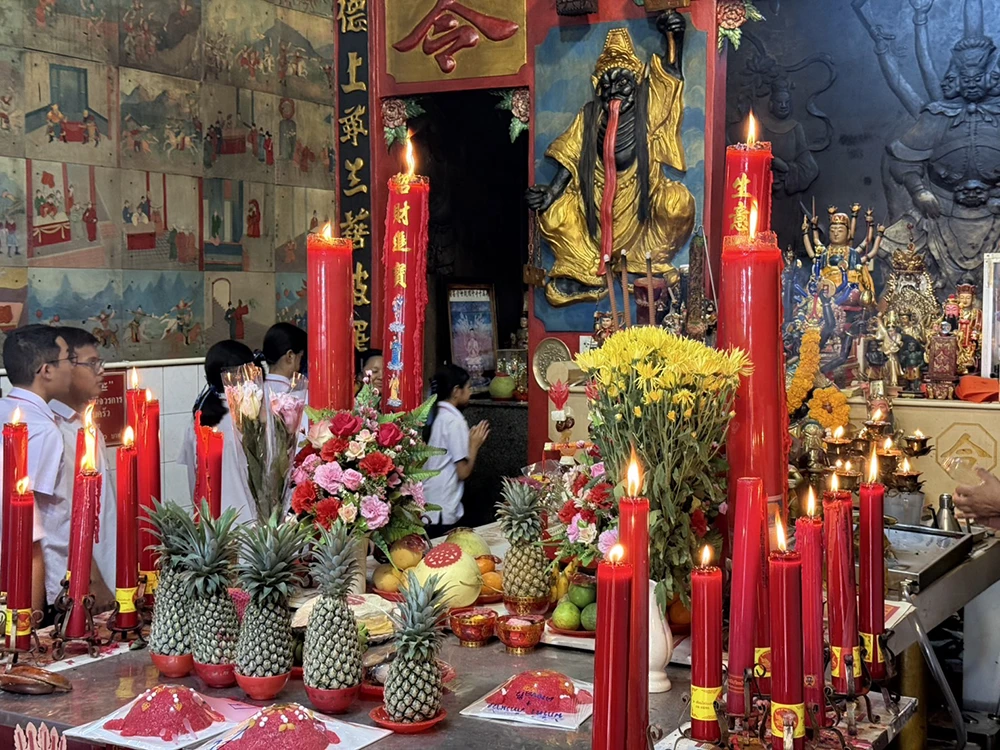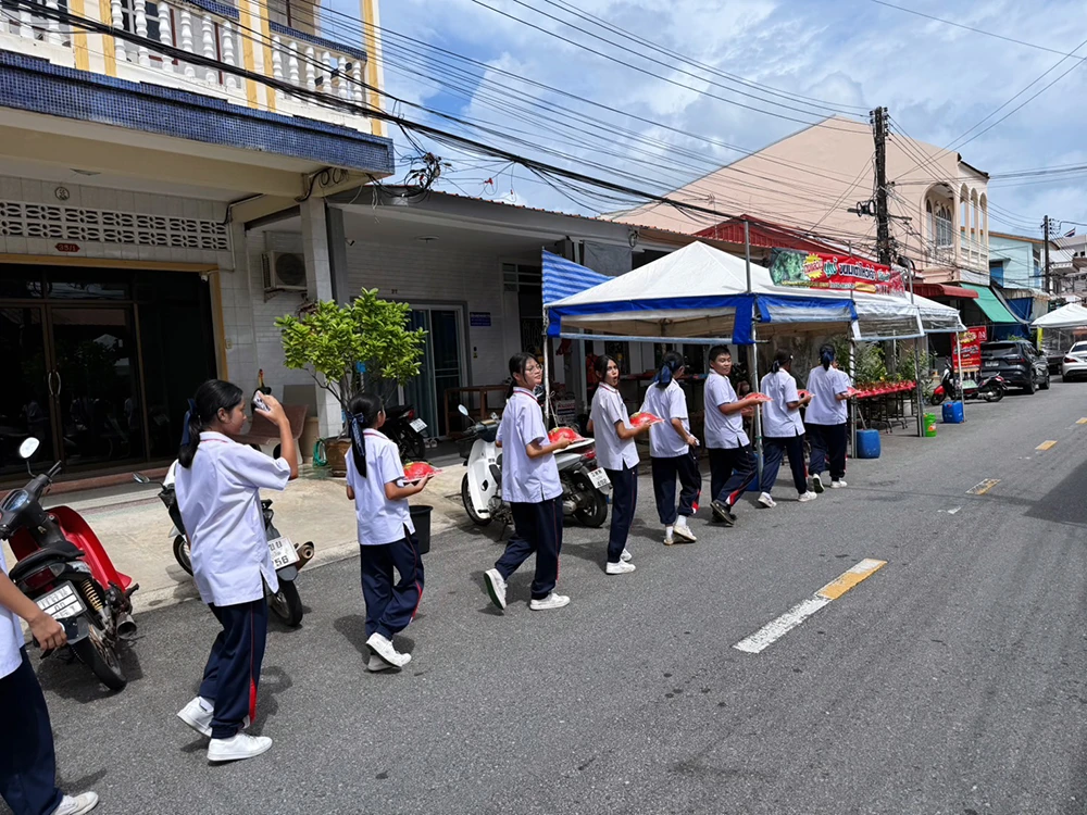 วันศุกร์ที่ 12 กันยายน 2568 ดร.ณัฐญาพร เสวตานนท์ ผู้อำนวยการโรงเรียนเฉลิมพระเกียรติสมเด็จพระศรีนครินทร์ ภูเก็ต ในพระราชูปถัมภ์สมเด็จพระเทพรัตนราชสุดาฯ สยามบรมราชกุมารี มอบหมายให้นางสาวสุพิชญา อังคะมาตย์ หัวหน้างานส่งเสริมวัฒนธรรมสัมพันธ์ภาษา พร้อมด้วยคณะครู นำนักเรียนเข้าร่วมกิจกรรม ทำขนมเต่า เล่าประวัติพ้อต่อ เดินไปไหว้พระ ภายใต้โครงการส่งเสริมวัฒนธรรมสัมพันธ์ภาษา(ปุ๊นเต่ท้องถิ่น รักษ์ศิลป์ภูเก็ต)กิจกรรม “เต่าพาขึ้นบุญ หอมละมุนพ้อต่อ”โดยได้รับการสนับสนุนจากสมาคมผู้ปกครองและครู ร้านโฮ่เฮี้ยงและศาลเจ้าผ้อต่อก๊ง บางเหนียว ณ ร้านโฮ่เฮี้ยงและศาลเจ้าผ้อต่อก๊ง บางเหนียว อำเภอเมือง จังหวัดภูเก็ต