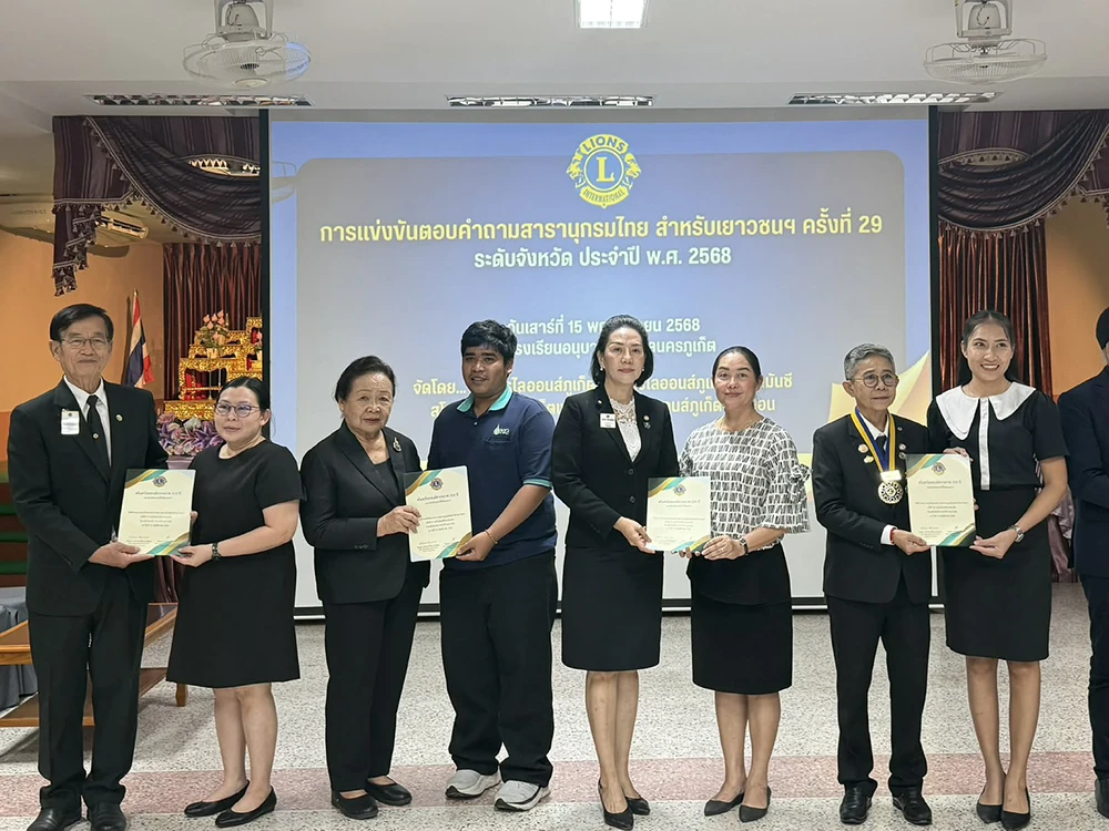 วันเสาร์ที่ 15 พฤศจิกายน 2568 ดร.ณัฐญาพร เสวตานนท์ ผู้อำนวยการโรงเรียนเฉลิมพระเกียรติสมเด็จพระศรีนครินทร์ ภูเก็ต ในพระราชูปถัมภ์สมเด็จพระเทพรัตนราชสุดาฯ สยามบรมราชกุมารี ได้มอบหมายให้คณะครูนำนักเรียนเข้าร่วมการแข่งขัน ประกอบด้วยครูปิยะวรรณ นุ่นขาว และครูเตมีย์ อวะภาค การแข่งขันตอบปัญหาสารานุกรมไทย ระดับชั้นมัธยมศึกษาตอนต้น ครั้งที่ 29 ประจำปี 2568 ระดับจังหวัด ซึ่งจัดโดย สโมสรไลออนสากล ภาครวม 310 ประเทศไทย ณ โรงเรียนอนุบาลเทศบาลนครภูเก็ต
