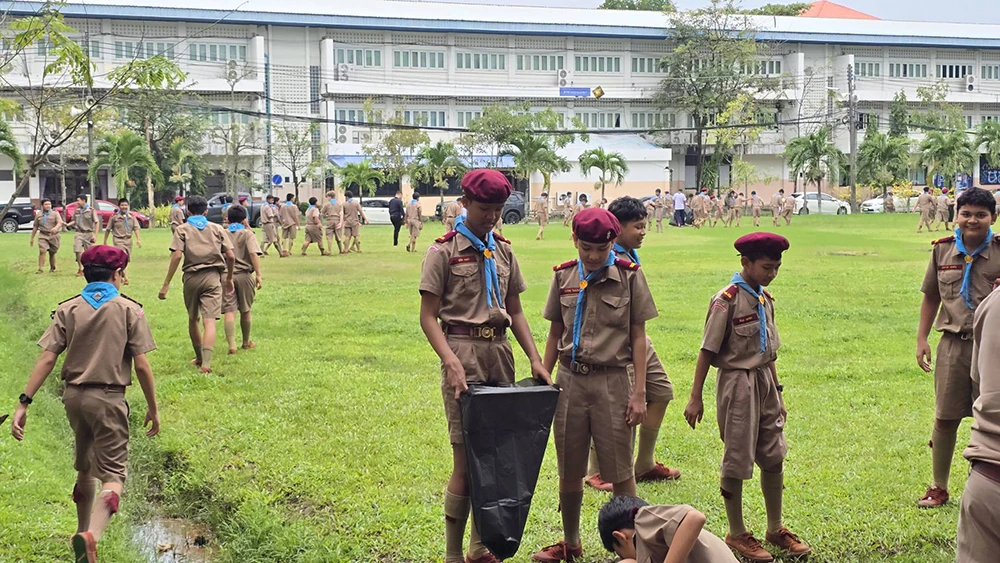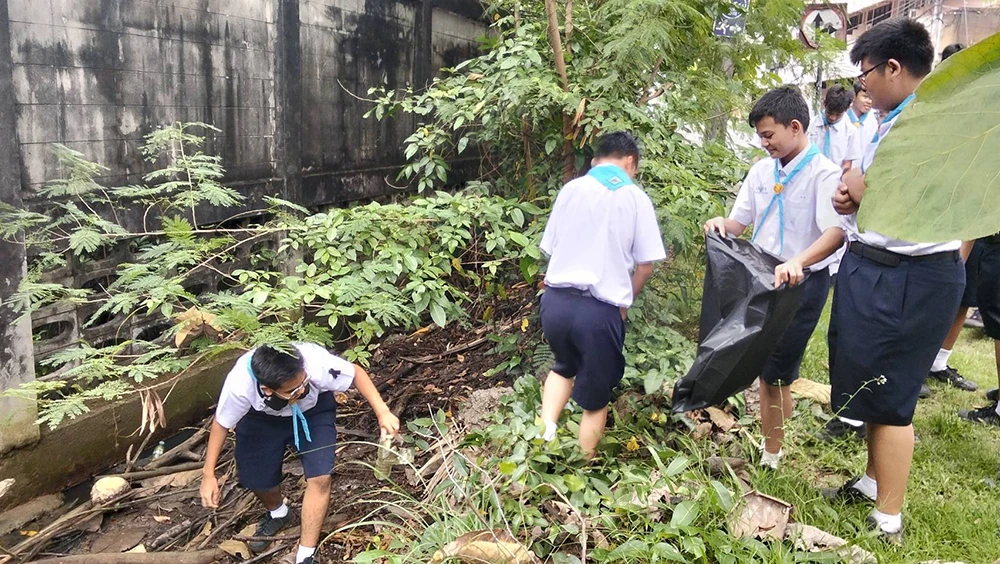 โดยที่ลูกเสือชั้นมัธยมศึกษาปีที่ 1 จะบำเพ็ญสาธารณประโยชน์บริเวณรอบๆ อาคารลีลาวดี อาคารหอพักชาย-หญิงและบริเวรอาคารช้องนาง ลูกเสือชั้นมัธยมศึกษาปีที่ 2 บริเวณป่าโกงกางหน้าอาคารพุทธรักษาและรอบๆ อาคารชิโน , อาคารม่วงเทพรัตน์ ลูกเสือชั้นมัธยมศึกษาปีที่ 3 บริเวนสนามรอบอาคารศรีสิรินธร สนามบาส(โดมเขียว) , อาคารชบาชมพูและอาคารสี่หลัง