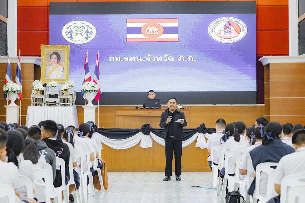 วันศุกร์ที่ 14 พฤศจิกายน 2568 ดร.ณัฐญาพร เสวตานนท์ ผู้อำนวยการโรงเรียนเฉลิมพระเกียรติสมเด็จพระศรีนครินทร์ ภูเก็ต ในพระราชูปถัมภ์สมเด็จพระเทพรัตนราชสุดาฯ สยามบรมราชกุมารี มอบหมายให้นางรัตนาภรณ์ ตันรัตนส่องแสง รองผู้อำนวยการ กลุ่มบริหารวิชาการ และนายอธิพงษ์ ปรีชา รองผู้อำนวยการกลุ่มบริหารทั่วไป ร่วมต้อนรับคณะจากกองอำนวยการรักษาความมั่นคงภายในจังหวัดภูเก็ต (กอ.รมน. จังหวัดภูเก็ต) ที่เดินทางมาเพื่อ ประชาสัมพันธ์โครงการ “เพชรในตม” ณ ห้องประชุม 120 ปี สมเด็จย่า หอประชุมประดู่แดง