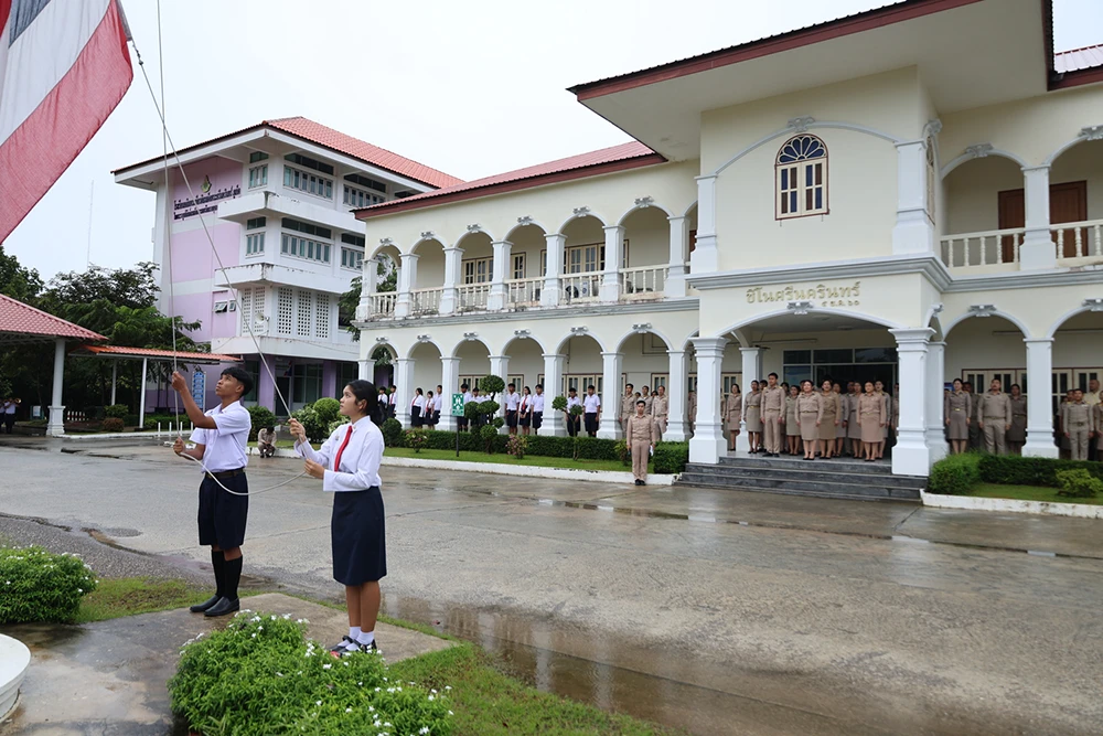 ร่วมเคารพธงชาติและร้องเพลงชาติไทย กิจกรรม 28 กันยายน วันพระราชทานธงชาติไทย (Thai National Flag Day) ณ หน้าเสาธง อาคารชิโนศรีนครินทร์โรงเรียนเฉลิมพระเกียรติ