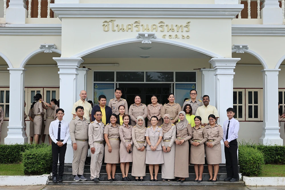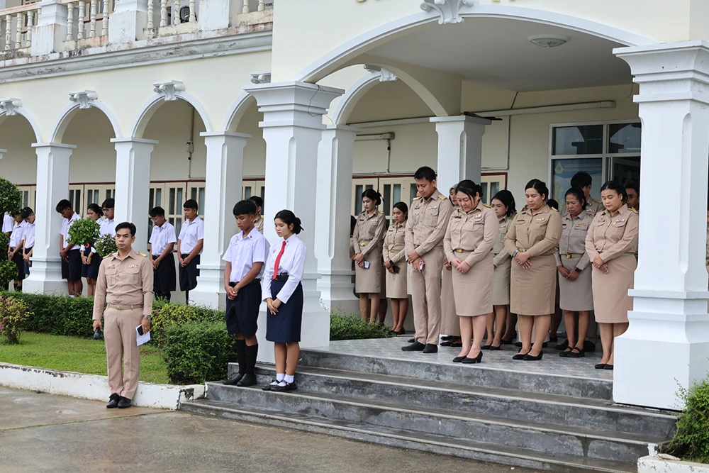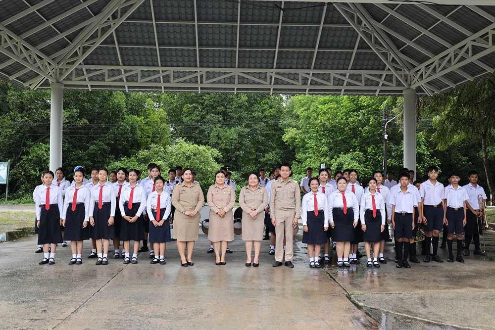 วันจันทร์ที่ 29 กันยายน พ.ศ. 2568 ดร.ณัฐญาพร เสวตานนท์ ผู้อำนวยการโรงเรียนเฉลิมพระเกียรติสมเด็จพระศรีนครินทร์ ภูเก็ต ในพระราชูปถัมภ์สมเด็จพระเทพรัตนราชสุดาฯ สยามบรมราชกุมารี พร้อมด้วยคณะรองผู้อำนวยการ คณะครูและนักเรียน ร่วมเคารพธงชาติและร้องเพลงชาติไทย กิจกรรม 28 กันยายน วันพระราชทานธงชาติไทย (Thai National Flag Day) น้อมรำลึกถึงพระมหากรุณาธิคุณพระบาทสมเด็จพระมงกุฎเกล้าเจ้าอยู่หัว รัชกาลที่ 6 ที่ทรงพระราชทานธงไตรรงค์เป็นธงชาติไทย ณ หน้าเสาธง อาคารชิโนศรีนครินทร์โรงเรียนเฉลิมพระเกียรติ สมเด็จพระศรีนครินทร์ ภูเก็ต ในพระราชูปถัมภ์สมเด็จพระเทพรัตนราชสุดาฯ สยามบรมราชกุมารี