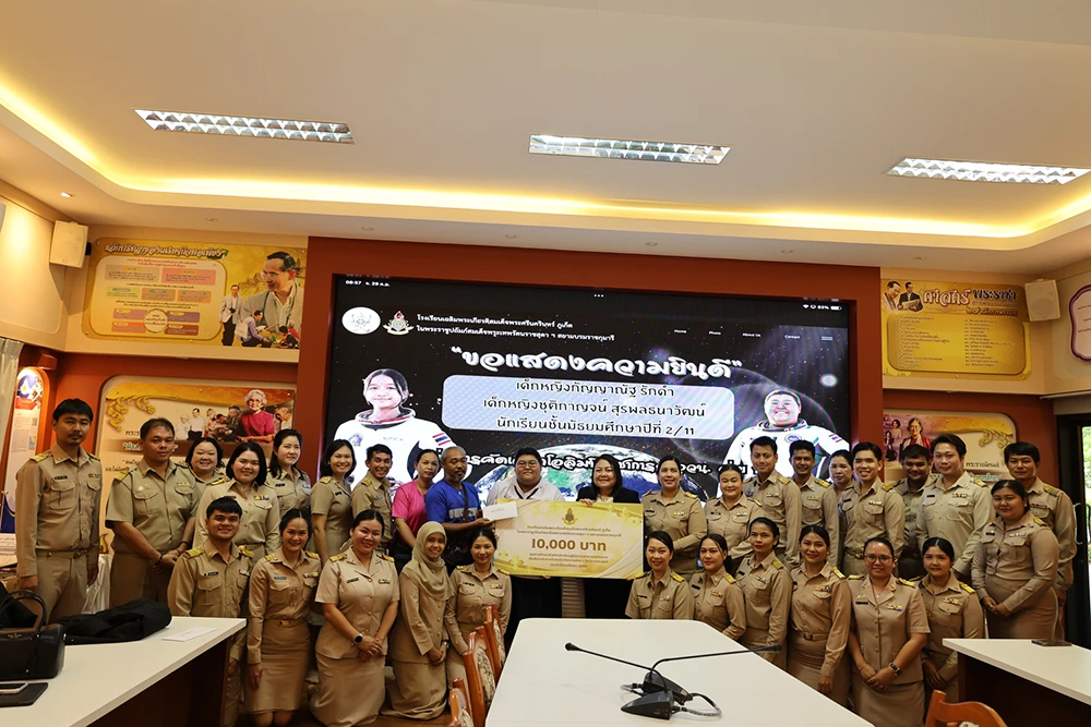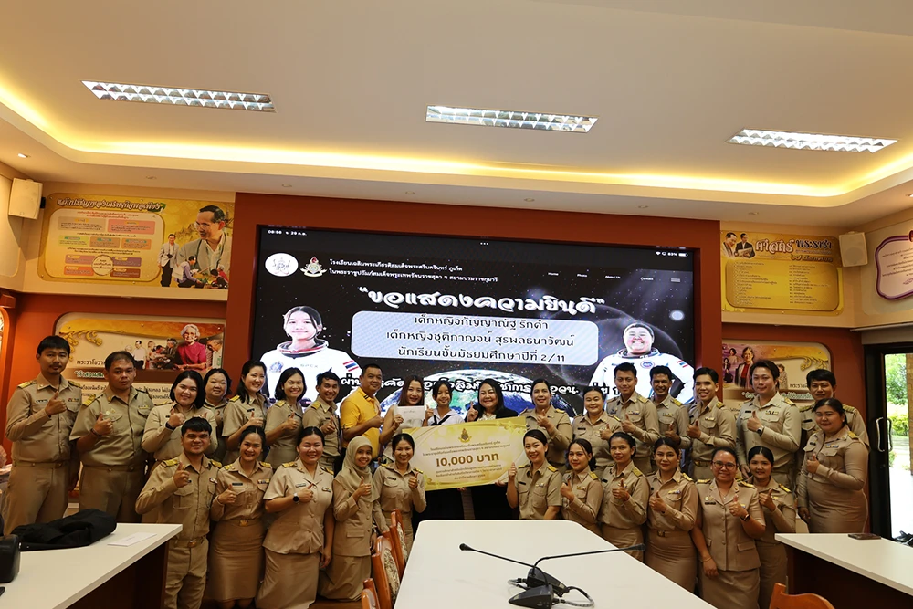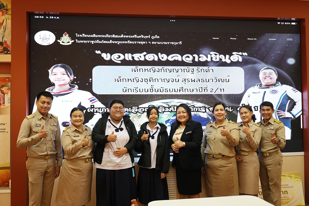 วันจันทร์ที่ 29 กันยายน พ.ศ. 2568 ดร.ณัฐญาพร เสวตานนท์ ผู้อำนวยการโรงเรียนเฉลิมพระเกียรติสมเด็จพระศรีนครินทร์ ภูเก็ต ในพระราชูปถัมภ์สมเด็จพระเทพรัตนราชสุดาฯ สยามบรมราชกุมารี พร้อมด้วยคณะรองผู้อำนวยการและคณะครู ร่วมแสดงความยินดีเเละมอบทุนการศึกษาให้กับนักเรียนที่ผ่านการคัดเลือกมูลนิธิส่งเสริมโอลิมปิกวิชาการ และพัฒนามาตรฐานวิทยาศาสตร์ศึกษา ในพระอุปถัมภ์สมเด็จพระเจ้าพี่นางเธอ เจ้าฟ้ากัลยาณิวัฒนา กรมหลวงนราธิวาสราชนครินทร์ (สอวน.) ค่าย 1 สาขาวิชาดาราศาสตร์ ประจำปีการศึกษา 2568 ณ ห้อง SEP Active Learning Center โรงเรียนเฉลิมพระเกียรติสมเด็จพระศรีนครินทร์ ภูเก็ต