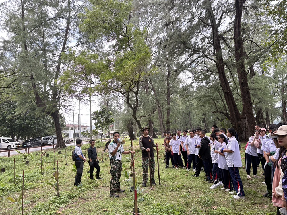วันเสาร์ที่ 8 พฤศจิกายน 2568 ดร.ณัฐญาพร เสวตานนท์ ผู้อำนวยการโรงเรียนเฉลิมพระเกียรติสมเด็จพระศรีนครินทร์ ภูเก็ต ในพระราชูปถัมภ์สมเด็จพระเทพรัตนราชสุดาฯ สยามบรมราชกุมารี มอบหมายให้ คณะครูงานส่งเสริมสิ่งแวดล้อมในโรงเรียนและงานส่งเสริม ประชาธิปไตยในโรงเรียนและสภานักเรียน นำคณะกรรมการสภานักเรียนและนักเรียนจิตอาสา เข้าร่วมกิจกรรม “SW.PK. ใจอาสา รักษ์หาด ป้องกัน คลื่นด้วยผืนป่า” ณ อุทยานแห่งชาติสิรินาถ จังหวัดภูเก็ต