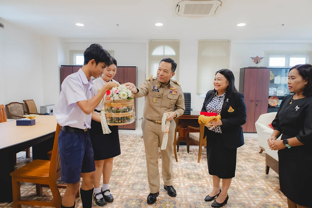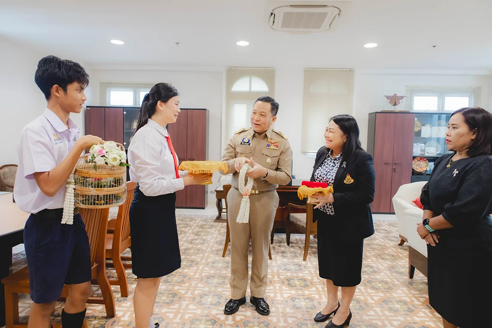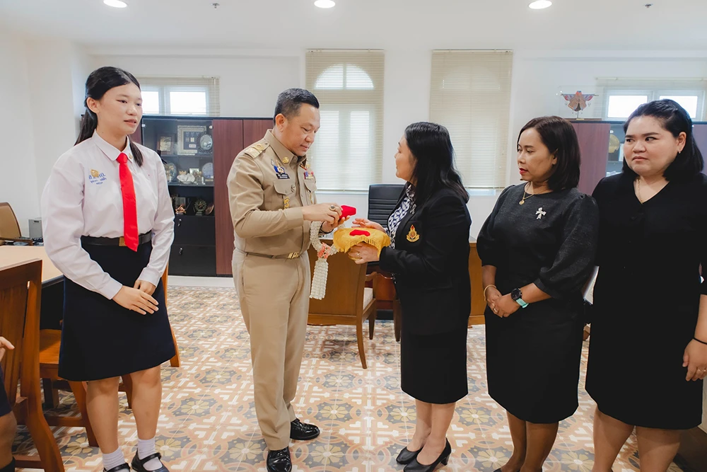 วันจันทร์ที่ 24 พฤศจิกายน 2568 ดร.ณัฐญาพร เสวตานนท์ ผู้อำนวยการโรงเรียนเฉลิมพระเกียรติสมเด็จพระศรีนครินทร์ ภูเก็ต ในพระราชูปถัมภ์สมเด็จพระเทพรัตนราชสุดาฯ สยามบรมราชกุมารี พร้อมด้วยตัวแทนคณะครู และตัวแทนนักเรียน ได้ร่วมต้อนรับนายนิรัตน์ พงษ์สิทธิถาวร ผู้ว่าราชการจังหวัดภูเก็ต