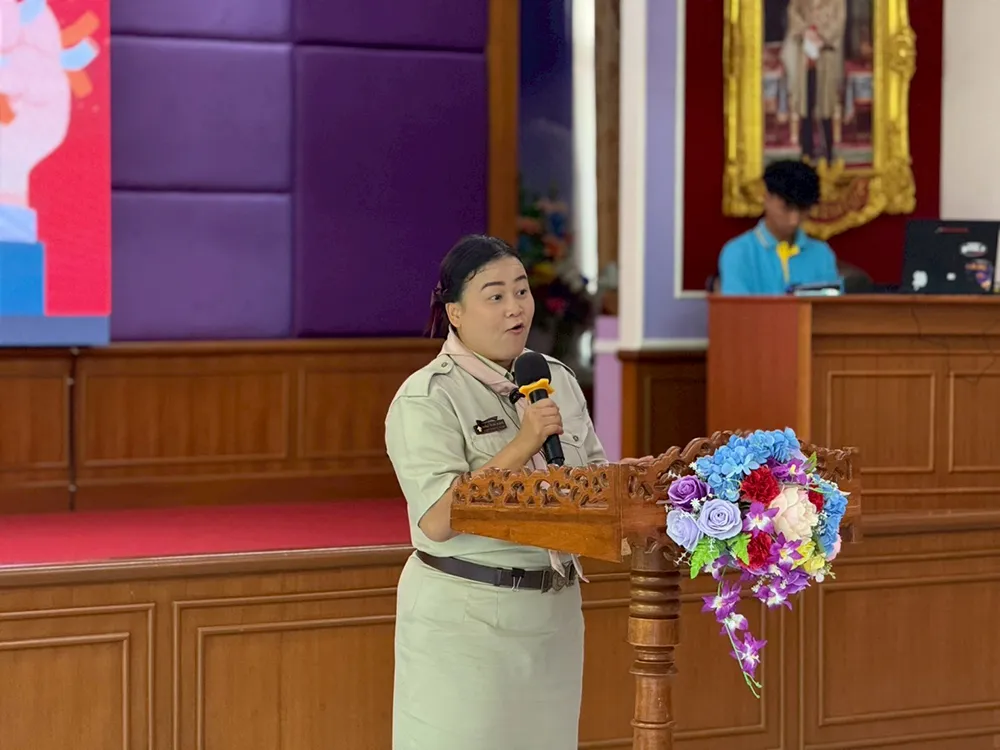 วันพุธที่ 20 สิงหาคม 2568 ดร.ณัฐญาพร เสวตานนท์ ผู้อำนวยการโรงเรียนเฉลิมพระเกียรติสมเด็จพระศรีนครินทร์ ภูเก็ต ในพระราชูปถัมภ์สมเด็จพระเทพรัตนราชสุดาฯ สยามบรมราชกุมารี มอบหมายให้นางพรทิพย์ ประทีป ณ ถลาง รองผู้อำนวยการกลุ่มบริหารงบประมาณ พร้อมด้วยคณะครู นำนักเรียนเข้าร่วมกิจกรรม “ค่ายเยาวชนรุ่นใหม่ห่างไกลยาเสพติด ประจำปีการศึกษา 2568 ณ ห้องประชุมม่วงเทพรัตน์ อาคารเฉลิมพระเกียรติ ในโอกาสฉลองพระชนมายุ 5 รอบ 2 เมษายน 2558 โรงเรียนเฉลิมพระเกียรติสมเด็จพระศรีนครินทร์ ภูเก็ต