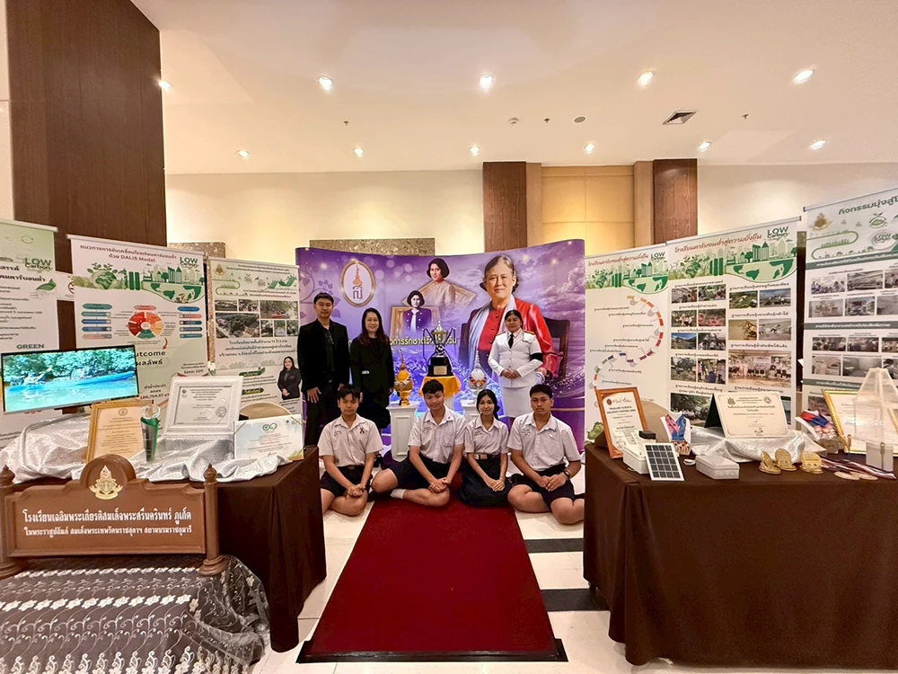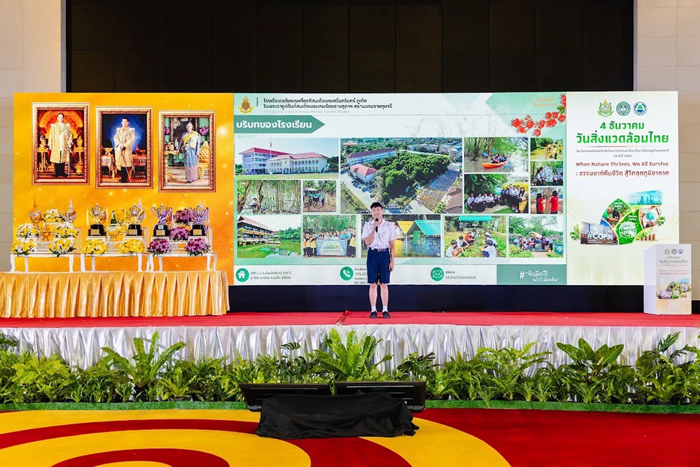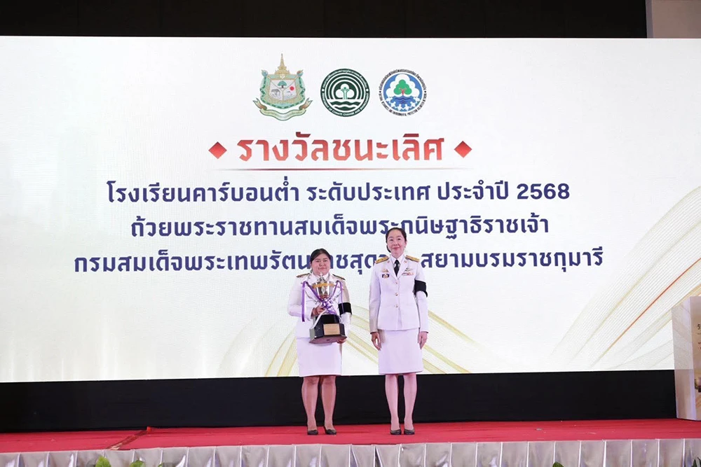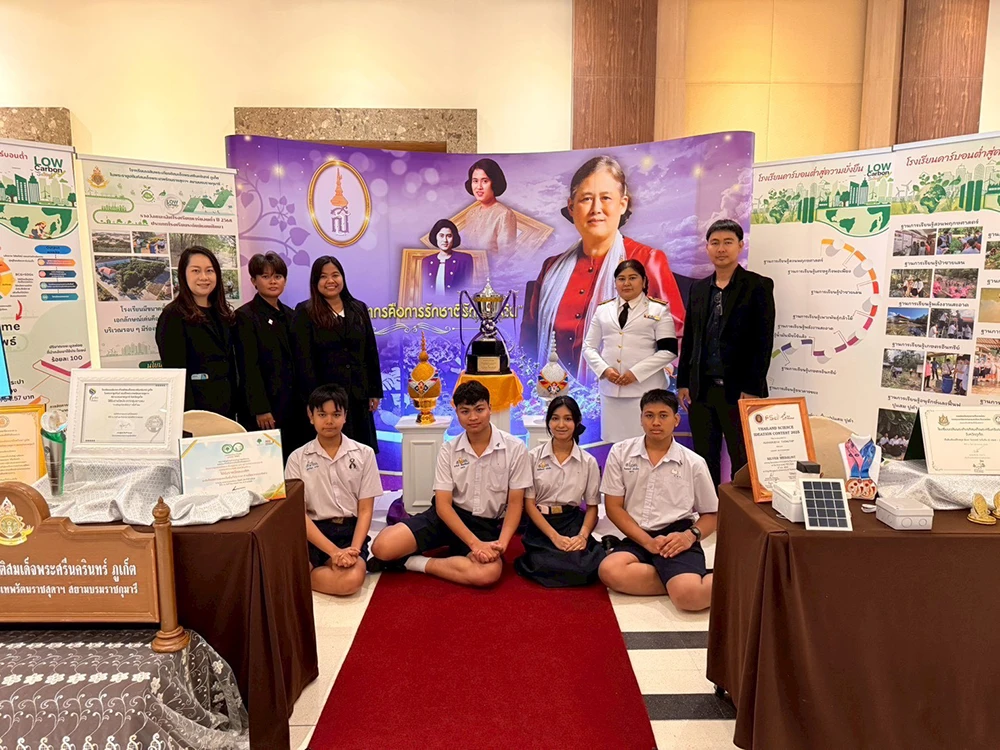 ระหว่างวันที่ 3 – 4 ธันวาคม 2568 ดร.ณัฐญาพร เสวตานนท์ ผู้อำนวยการโรงเรียนเฉลิมพระเกียรติสมเด็จพระศรีนครินทร์ ภูเก็ต ในพระราชูปถัมภ์สมเด็จพระเทพรัตนราชสุดาฯ สยามบรมราชกุมารี มอบหมายให้คณะครู และนักเรียนแกนนำสิ่งแวดล้อม เข้าร่วมงานวันสิ่งแวดล้อมไทยและวันอาสาสมัครพิทักษ์ทรัพยากรธรรมชาติและสิ่งแวดล้อมหมู่บ้านแห่งชาติ ประจำปี 2568 ซึ่งจัดโดยกรมการเปลี่ยนแปลงสภาพภูมิอากาศ และสิ่งแวดล้อม กระทรวงทรัพยากรธรรมชาติและสิ่งแวดล้อม โดยตัวแทนนักเรียนโรงเรียนชนะเลิศกลุ่ม B โรงเรียนคาร์บอนต่ำร่วมเสวนา นำเสนอนิทรรศการ ภายใต้แนวคิด “When Nature Thrives, We All Survive: ธรรมชาติคืนชีวิต สู้วิกฤตภูมิอากาศ“ และรับรางวัลชนะเลิศโรงเรียนคาร์บอนต่ำ ระดับประเทศ ถ้วยพระราชทานสมเด็จพระกนิษฐาธิราชเจ้า กรมสมเด็จพระเทพรัตนราชสุดาฯ สยามบรมราชกุมารี พร้อมเงินรางวัล 50,000 บาท ณ ห้องประชุมวายุภักษ์ ชั้น 4 โรงแรมเซ็นทารา ไลฟ์ ศูนย์ราชการและคอนเวนชันเซ็นเตอร์ แจ้งวัฒนะ กรุงเทพมหานคร