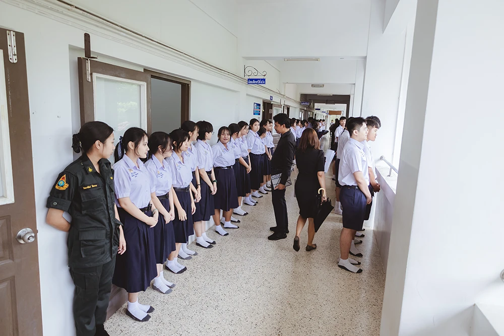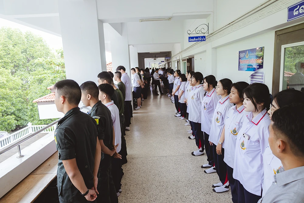 บรรยากาศเต็มไปด้วยความสดใสและคึกคัก ดร.ณัฐญาพร เสวตานนท์ ผู้อำนวยการโรงเรียนเฉลิมพระเกียรติสมเด็จพระศรีนครินทร์ ภูเก็ต ในพระราชูปถัมภ์สมเด็จพระเทพรัตนราชสุดาฯ สยามบรมราชกุมารี พร้อมด้วยคณะผู้บริหารและคณะครู ได้ให้การต้อนรับนักเรียนทุกคนกลับเข้าสู่รั้วโรงเรียนด้วยความอบอุ่น