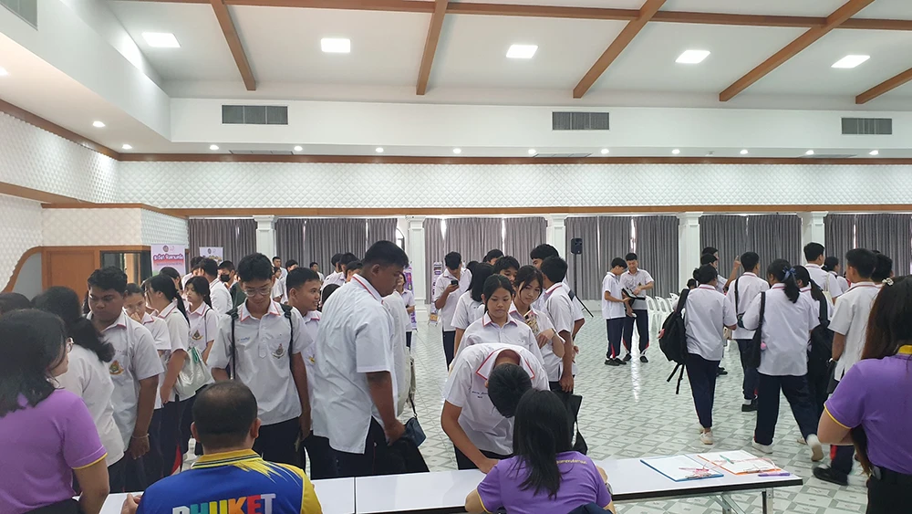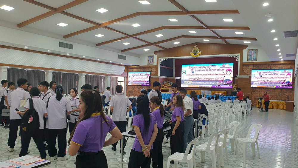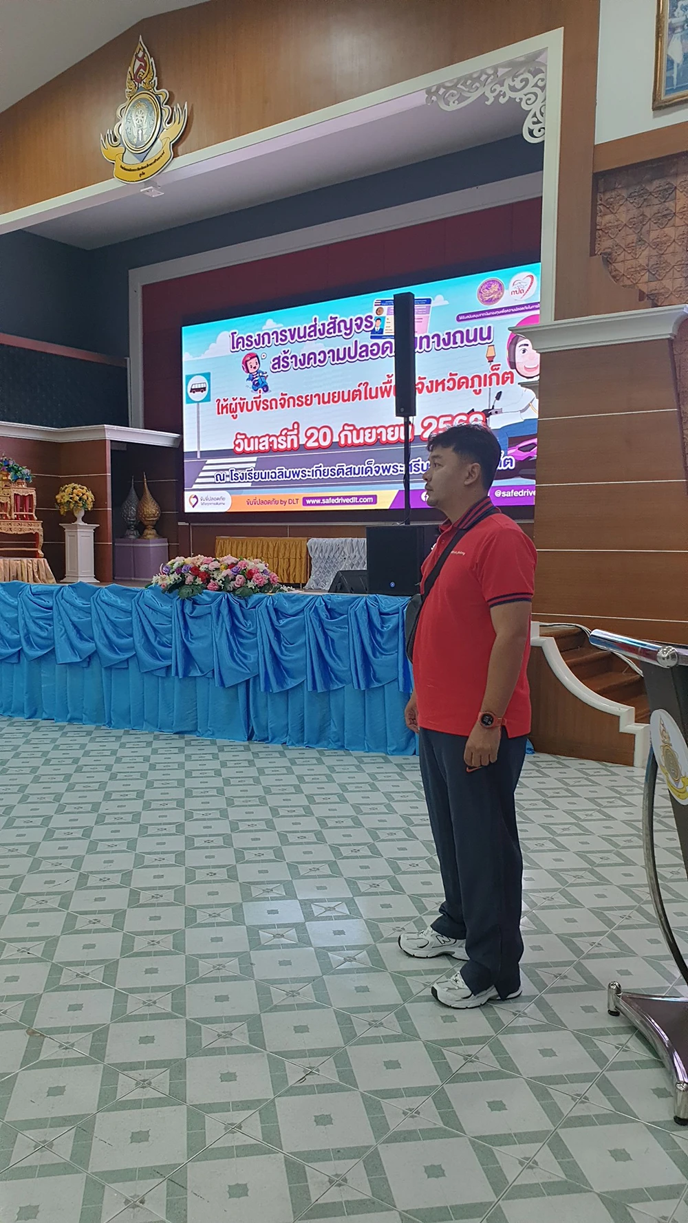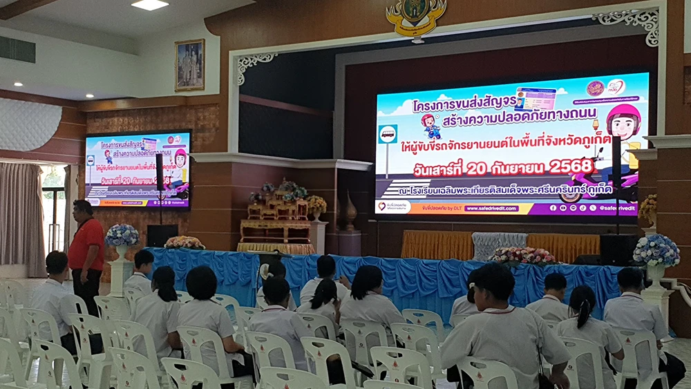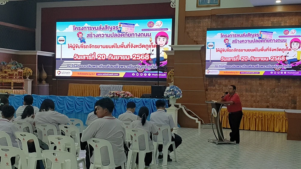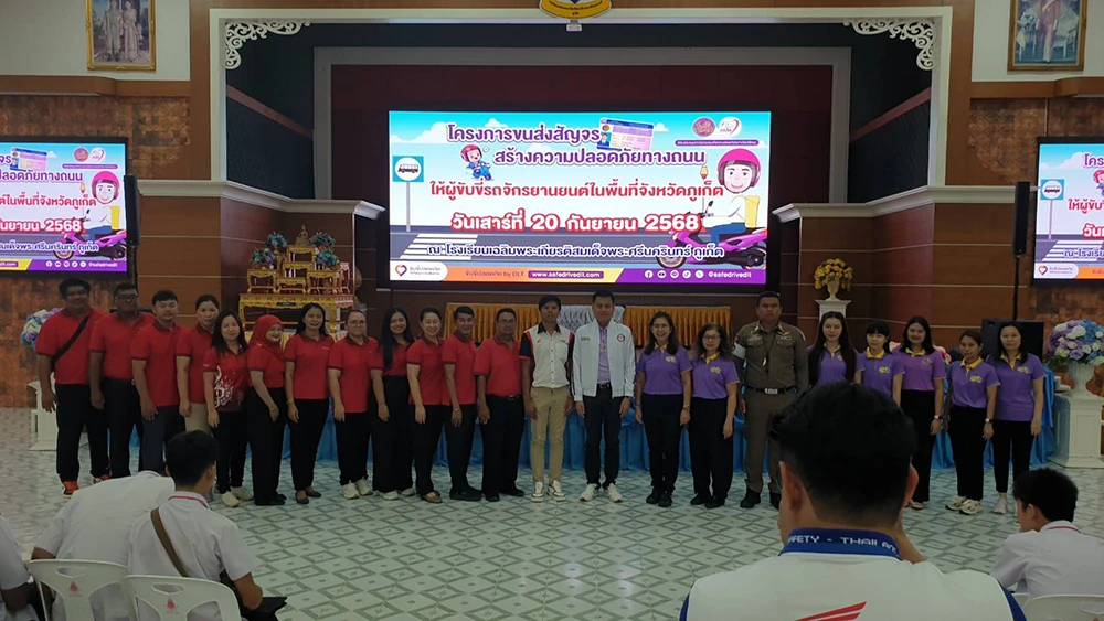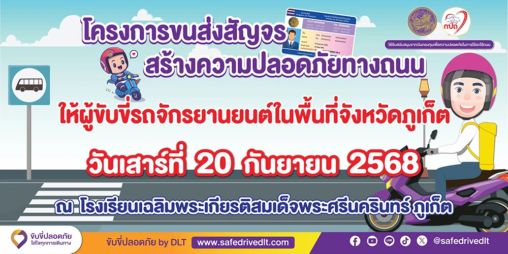 วันเสาร์ที่ 20 กันยายน 2568 ดร.ณัฐญาพร เสวตานนท์ ผู้อำนวยการโรงเรียนเฉลิมพระเกียรติสมเด็จพระศรีนครินทร์ ภูเก็ต ในพระราชูปถัมภ์สมเด็จพระเทพรัตนราชสุดาฯ สยามบรมราชกุมารี มอบหมายให้นายอธิพงษ์ ปรีชา รองผู้อำนวยการกลุ่มบริหารกิจการนักเรียน พร้อมด้วยคณะครู นำนักเรียนเข้าร่วมอบรมโครงการขนส่งสัญจร สร้างความปลอดภัยทางท้องถนนให้ผู้ขับขี่รถจักรยานในพื้นที่จังหวัดภูเก็ต ณ ห้องประชุม 120 ปี สมเด็จย่า หอประชุมประดู่แดง โรงเรียนเฉลิมพระเกียรติสมเด็จพระศรีนครินทร์ ภูเก็ต ในพระราชูปถัมภ์สมเด็จพระเทพรัตนราชสุดาฯ สยามบรมราชกุมารี